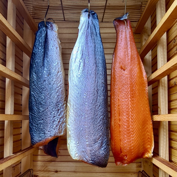 Filet de saumon, délicatement fumé à froid au bois d'olivier.